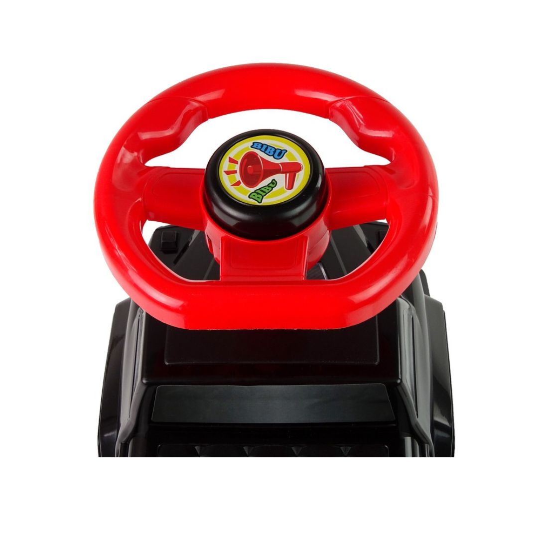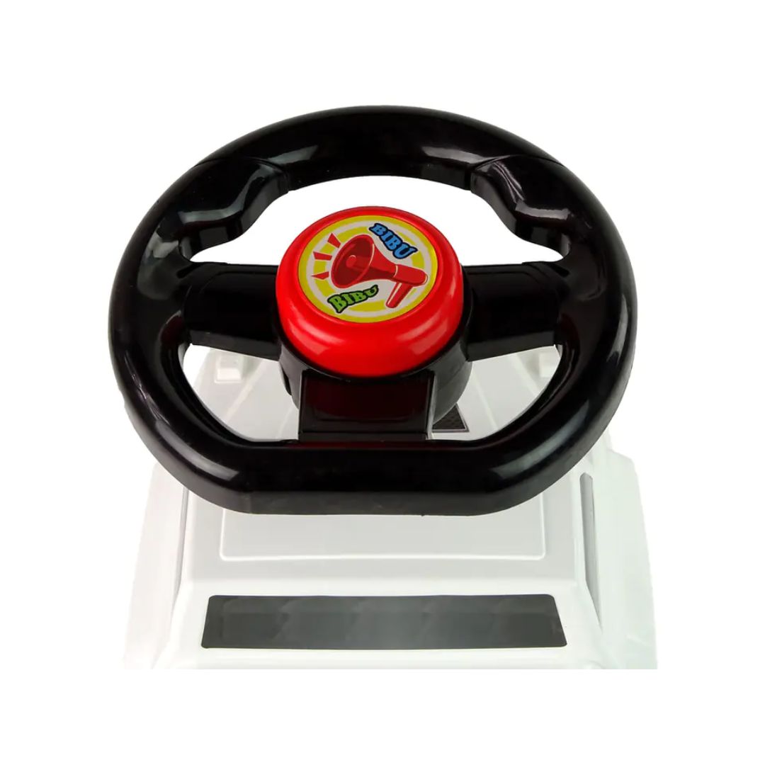 Detalji poput nalepnica u obliku farova i maske automobila daju ovoj šetalici izgled pravog vozila. Truba na sredini volana dodatno motiviše dete na igru i donosi osmeh pri svakom „bip-bip“ trenutku.