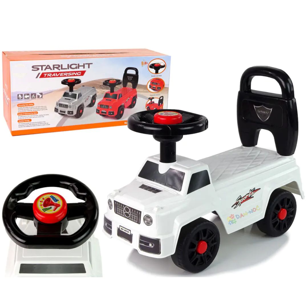 Auto-šetalica sa trubom i naslonom osmišljena je kao savršen pratilac u periodu kada dete uči da se samostalno kreće. Kroz svakodnevnu igru dete prirodno jača noge, uči da održava ravnotežu i stiče sigurnost u sopstvene pokrete, bez pritiska i forsiranja.
