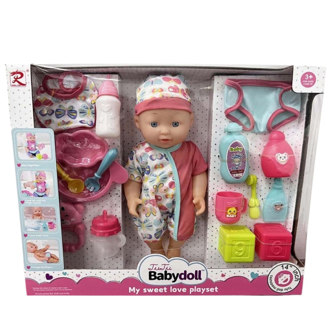 Ovaj bogati set sadrži sve što je potrebno za igru: dve flašice, set za hranjenje, zvečku, portiklu, gaćice za presvlačenje, četkicu za zube i dodatke za kupanje. Deca mogu da hrane, presvlače, kupaju i maze svoju bebu, stvarajući sopstvene priče i rituale brige.