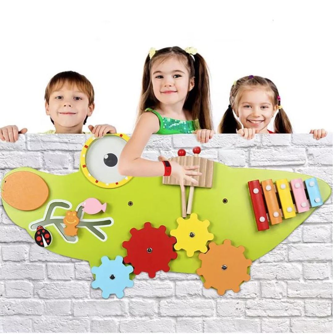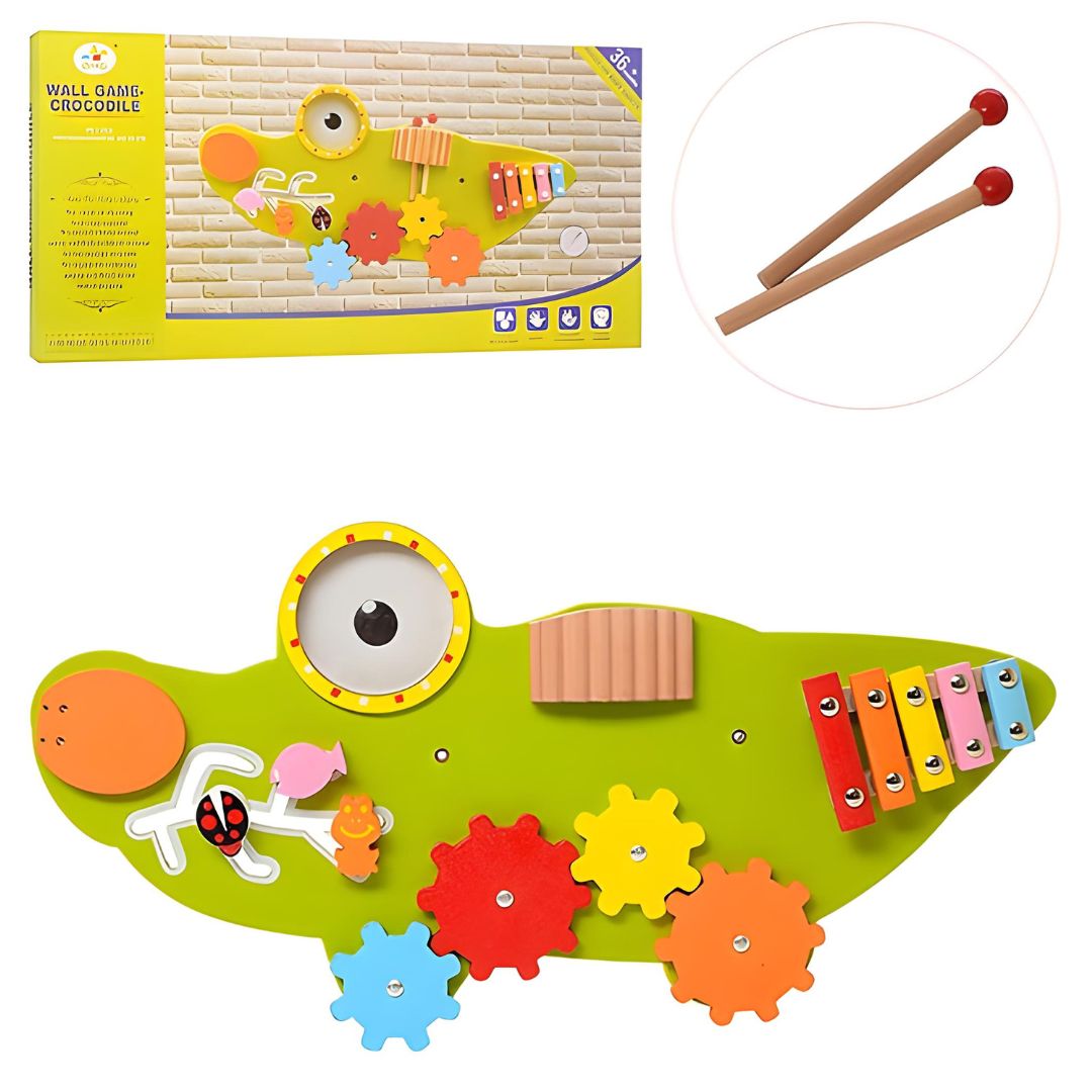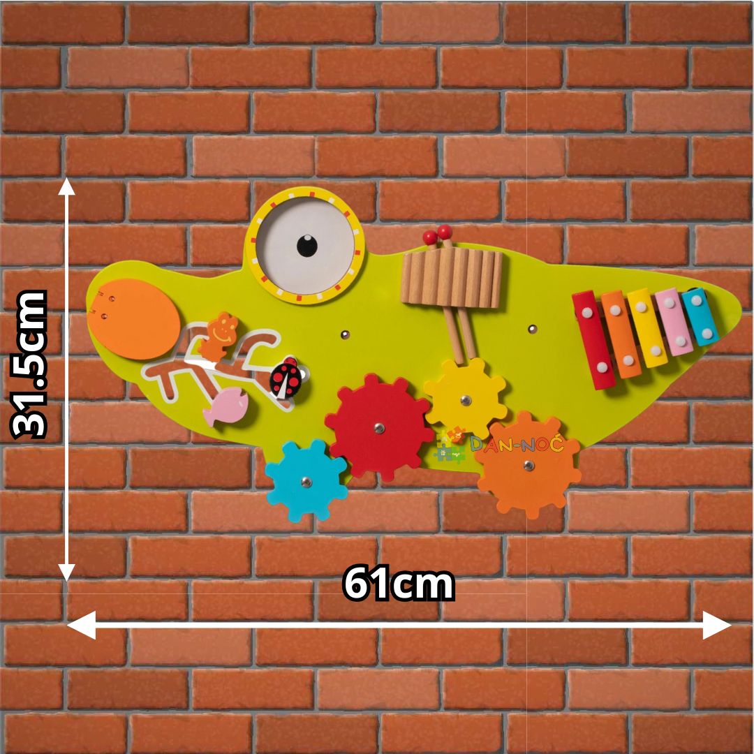 Ova drvena zidna edukativna tabla - krokodil je osmišljena da mališanima pruži sate kreativne igre dok uče osnovne veštine. Svaki detalj je prilagođen uzrastu dece, kombinujući elemente igre i obrazovanja. Deca kroz igru razvijaju finu motoriku, logičko razmišljanje i koncentraciju, a roditelji mogu biti sigurni da vreme provedeno uz ovu tablu ima i obrazovnu vrednost.