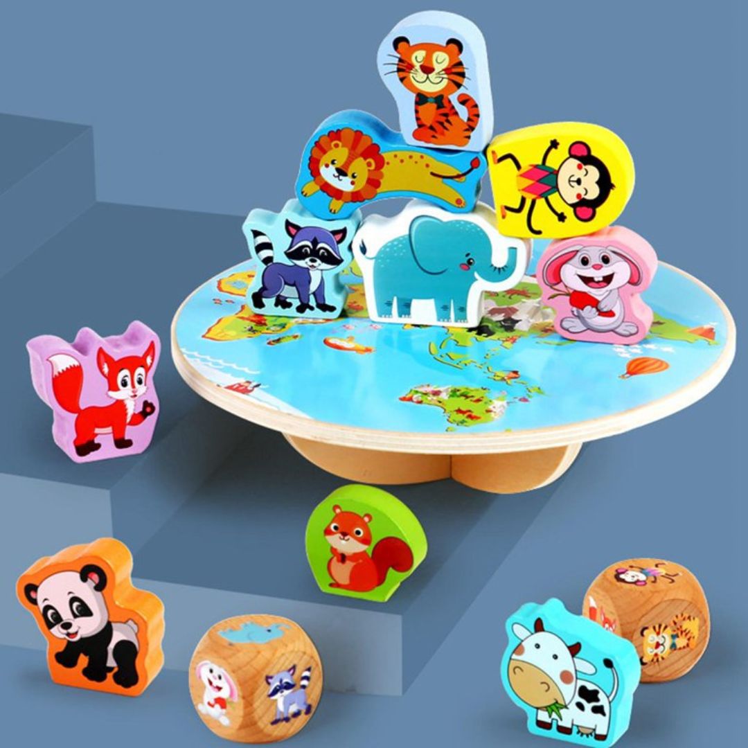 ✔️ Broj delova: 10 životinja + 2 kocke + okrugla balans baza sa mapom sveta