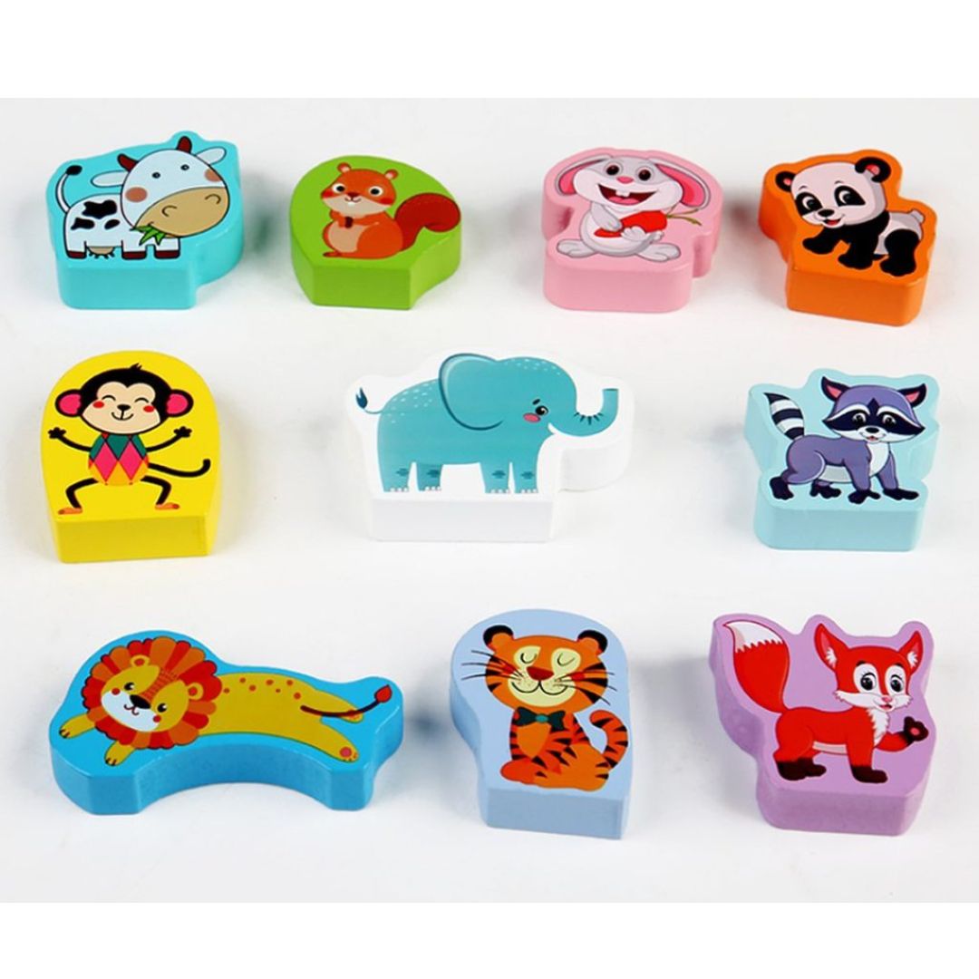Drvene životinje 10 kom sa kockicama - Balans igrica