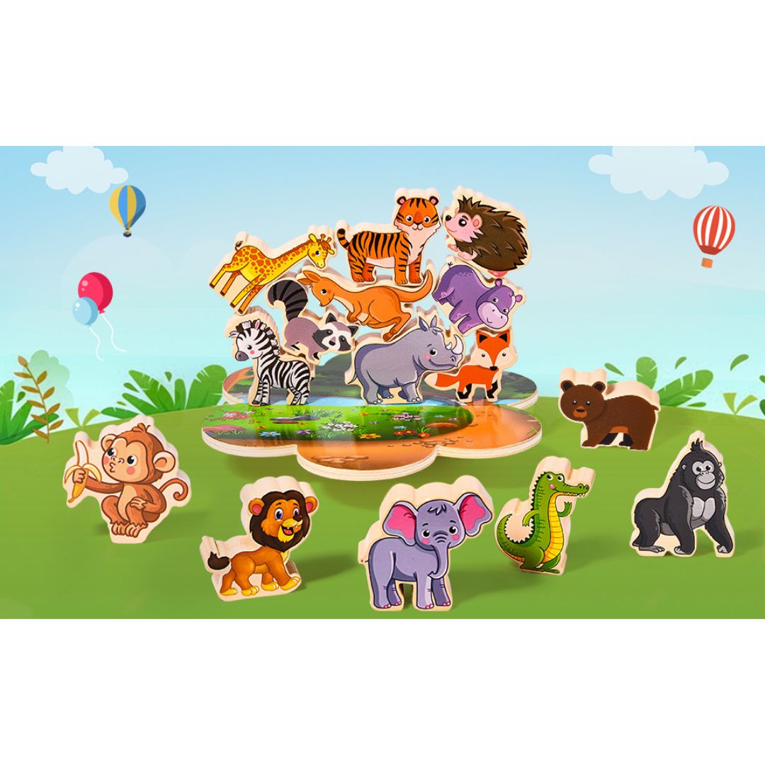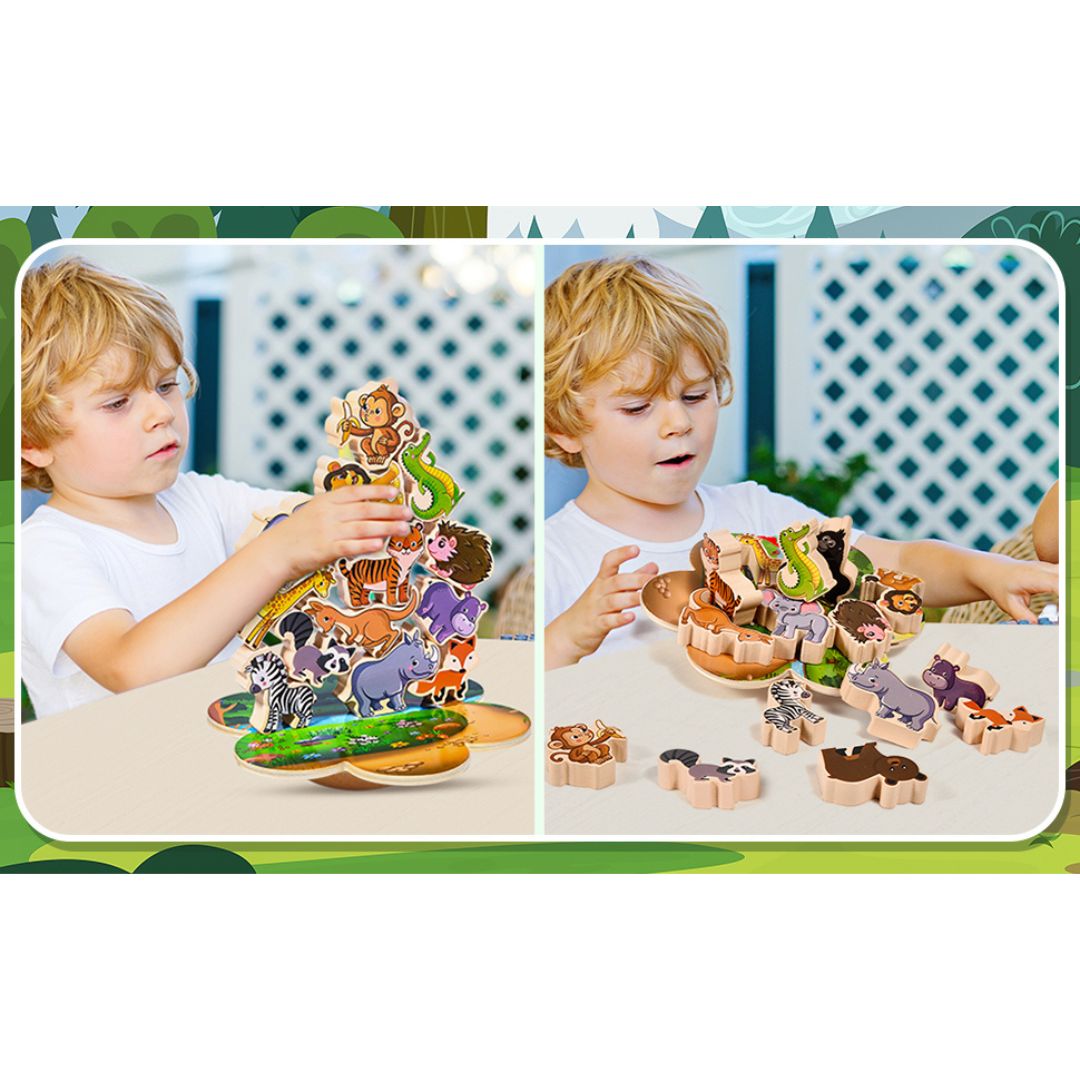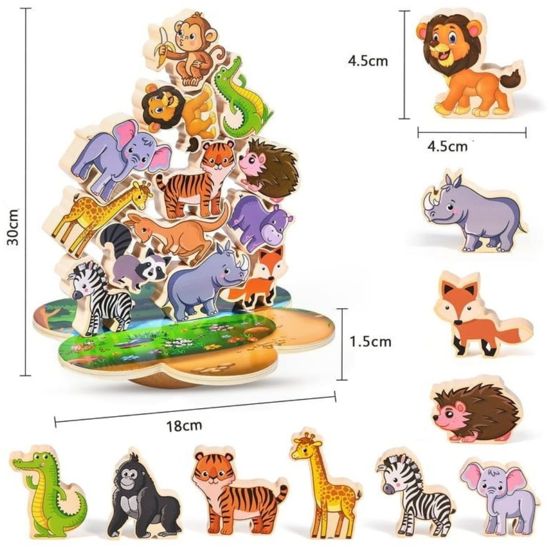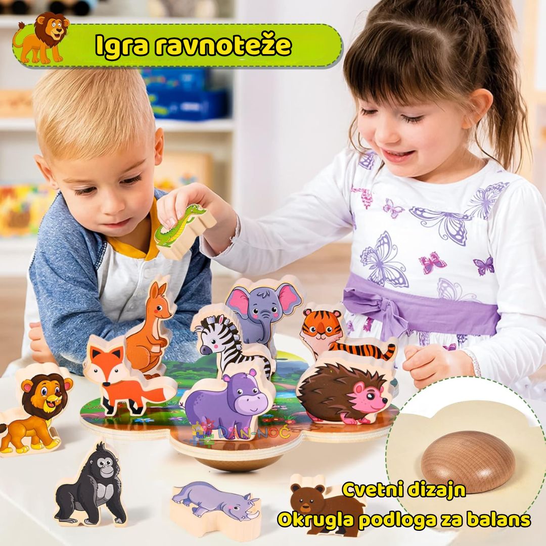 Balans igrica Drvene životinje zasniva se na ideji ravnoteže. Mališani imaju zadatak da poređaju životinje jednu na drugu, prateći pravilni redosled ili praveći maštovite kombinacije. Svaka pogrešna odluka može dovesti do rušenja ravnoteže, što igru čini uzbudljivom i zabavnom, a u isto vreme razvija strpljenje i koncentraciju.
