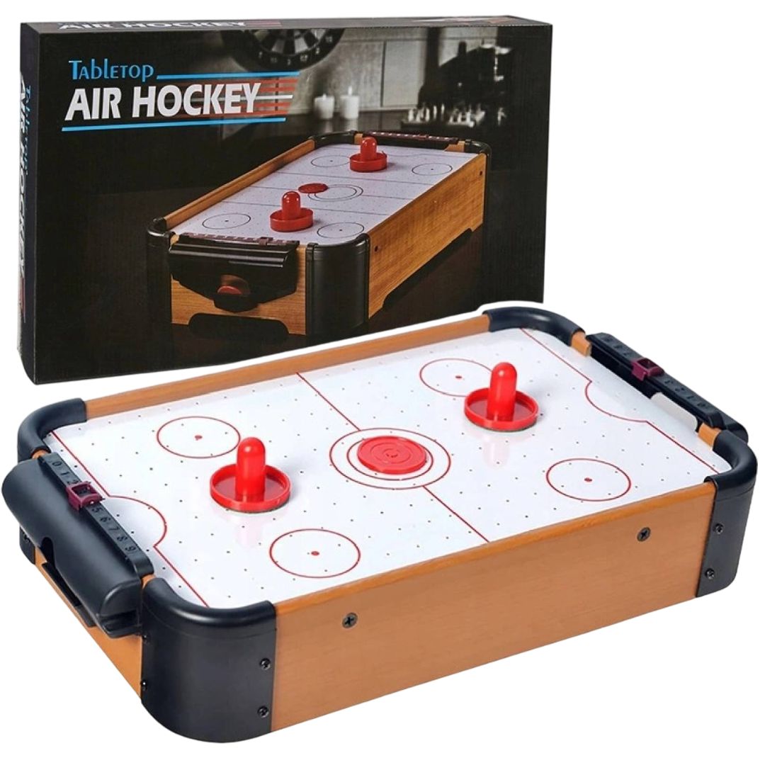 Drveni stoni hokej radi uz pomoć ventilatora koji omogućava da pak klizi nesmetano.