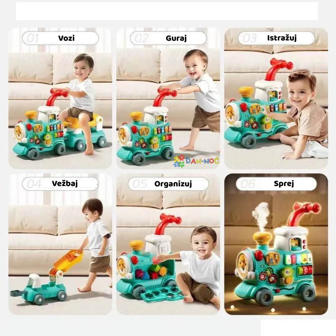 Dok dete gura vozić, razvija koordinaciju ruku i nogu, stabilnost i orijentaciju u prostoru. A kada sedne, uživa u interaktivnim elementima koji svetle i sviraju – to stimuliše sluh, vid i logičko razmišljanje. Svaki deo vozića je osmišljen da bude zanimljiv, ali i koristan za razvoj.
