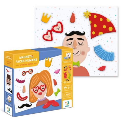 Uđi u svet beskrajne kreativnosti uz magnetnu igru Ljudsko lice! Sa 61 magnetom, mali umetnici mogu stvarati raznovrsne izraze, likove i karaktere, razvijajući maštu i fine motoričke veštine kroz igru.