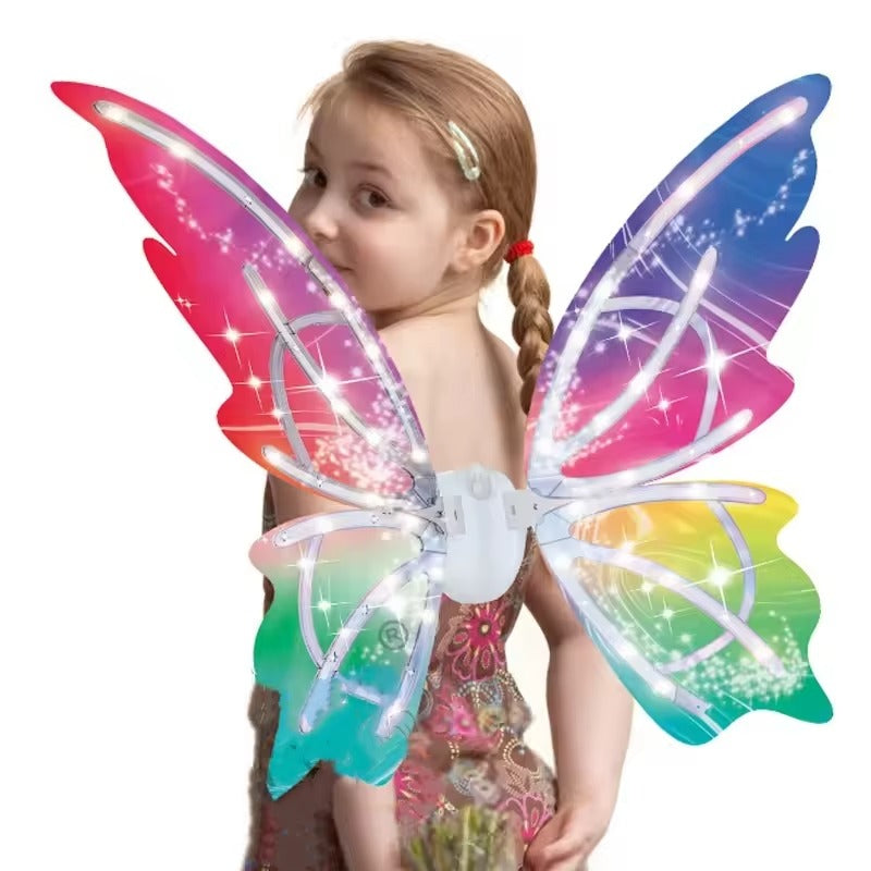 Kada se upale šarene svetlosne nijanse koje nežno menjaju boje, dete postaje deo svog sveta magije i svetlucanja. Krila su dovoljno velika da ostave utisak, ali i lagana da se nose satima bez umora.