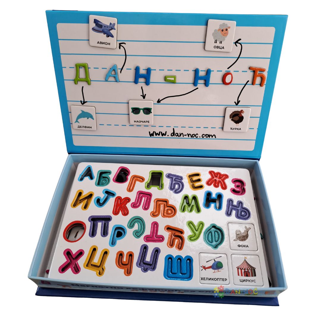 Poručite Magnetni koferčić – Azbuka i omogućite detetu da kroz igru otkrije čaroban svet slova. Dostupan je na www.dan-noc.com – jer učenje počinje uz zabavu.