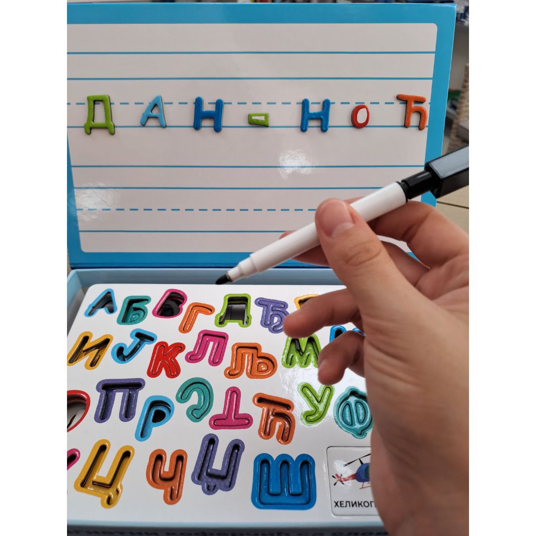 Ovaj kreativni set pretvara učenje slova u zanimljivu i interaktivnu aktivnost. Deca mogu sastavljati reči, prepoznavati slova i igrati se kombinovanjem magnetnih delova. Na taj način učenje postaje zabavno, a svako novo slovo donosi osećaj uspeha i ponosa.