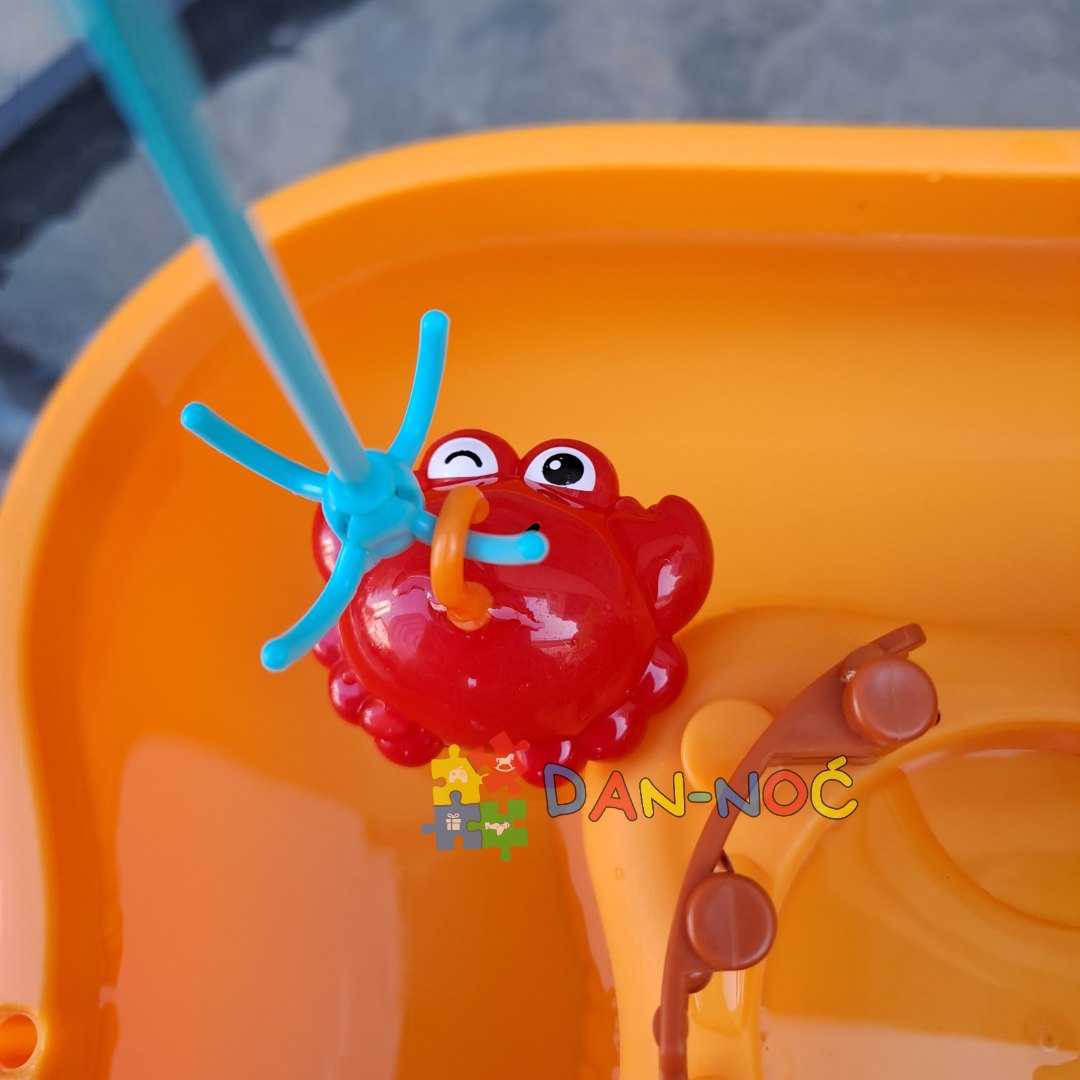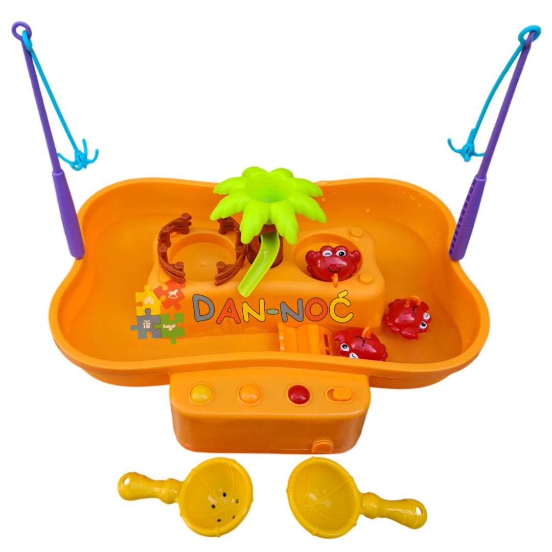 Muzički set za pecanje krabica nudi dinamično iskustvo koje deca obožavaju. Kada se uključi, voda u bazenu počinje lagano da kruži i nosi krabice, koje deca pecaju uz pomoć štapića. Taj neprestani pokret i promena pozicija krabica čini igru živom, izazovnom i uvek iznova zanimljivom.