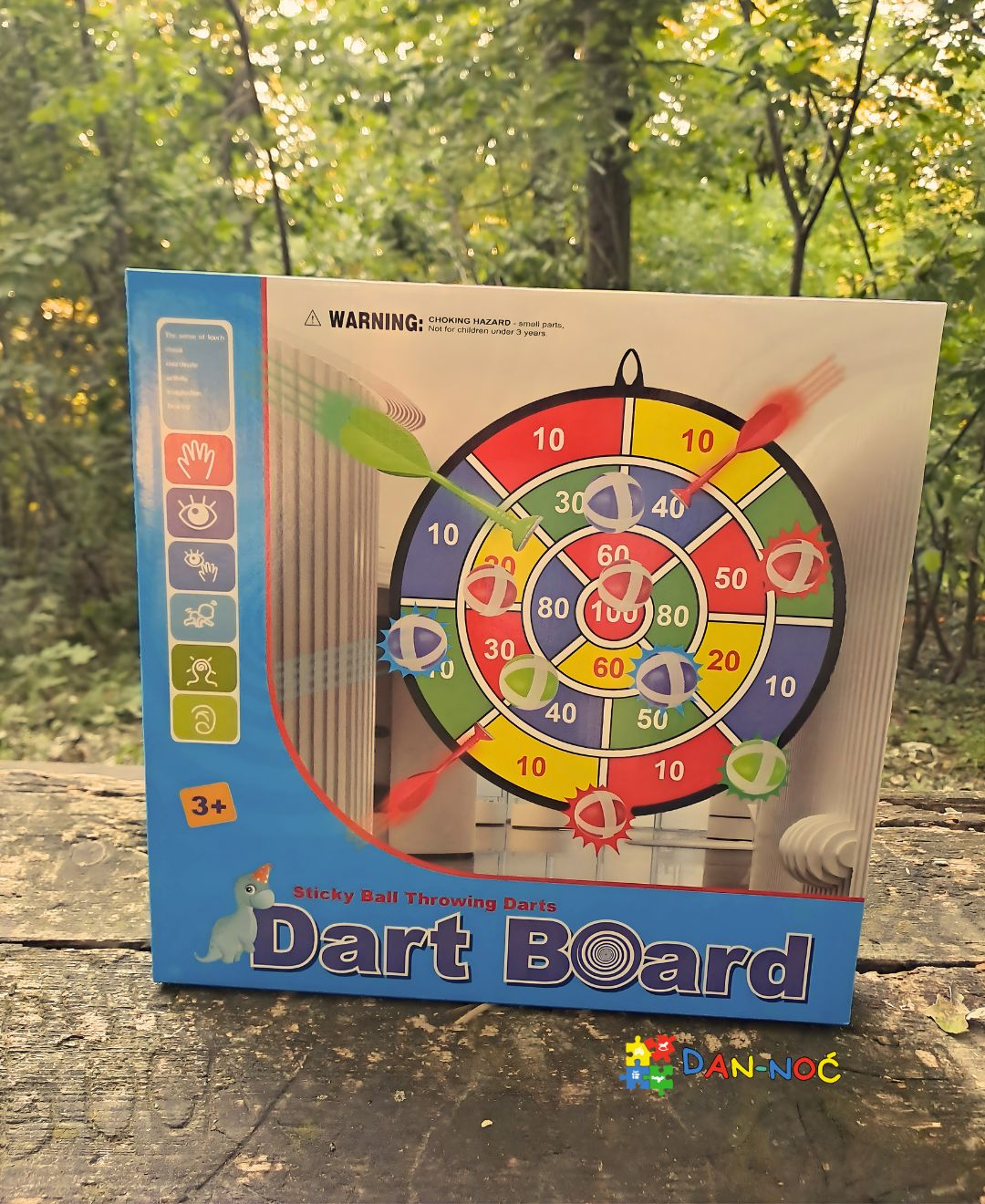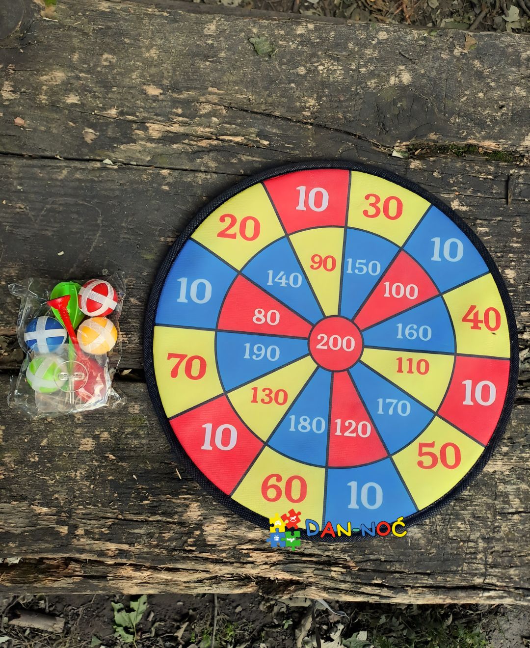 ✔️ Set sadrži tablu za pikado, 4 čičak loptice i 2 čičak strelice