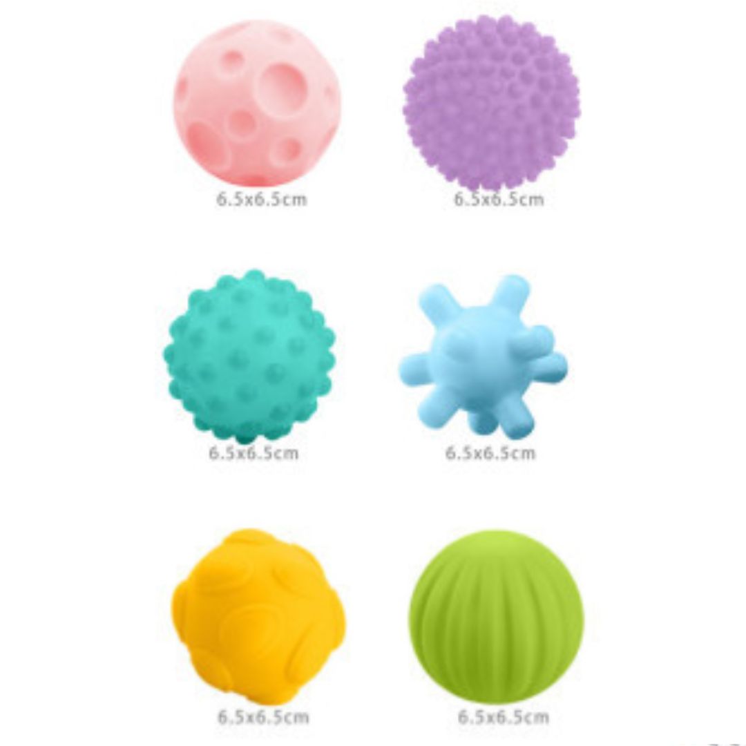 U pakovanju se nalazi 6 loptica u živim bojama, različitih oblika i tekstura.