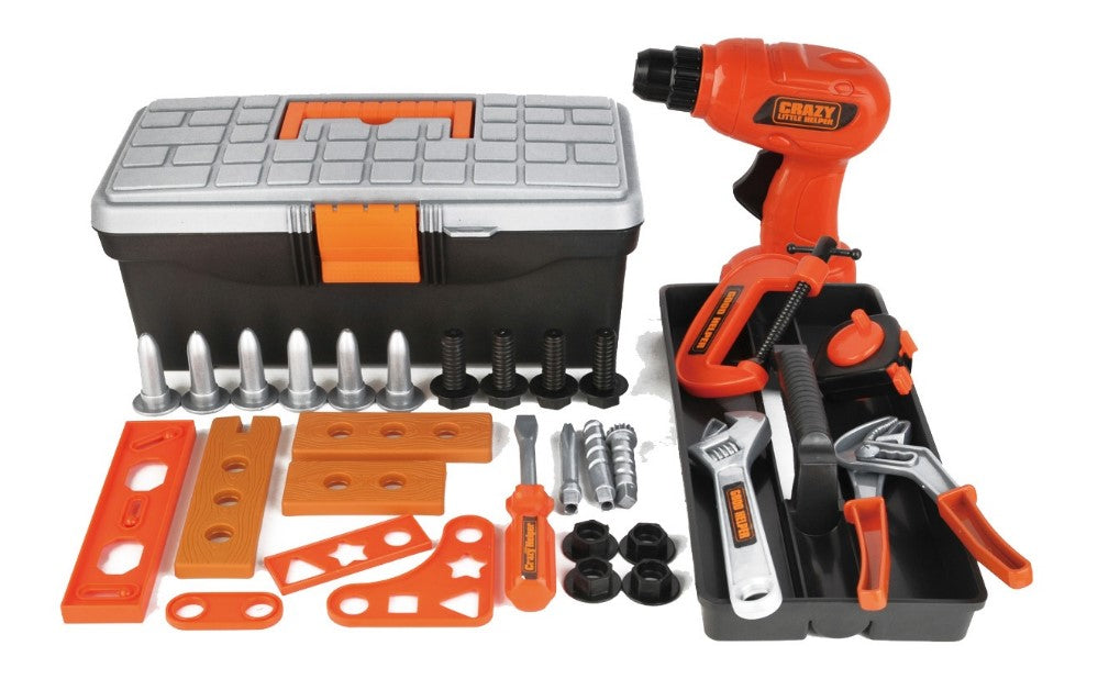 Osim šrafilice, set sadrži i funkcionalne alate kao što su francuski ključ, šrafciger, rolcangle, stega i metar. Tu su imitacije drvenih dasaka, odnosno pločica sa rupama, vijci, navrtke, ekseri i spojnica, omogućavajući mališanima da konstruišu i istražuju principe građenja.