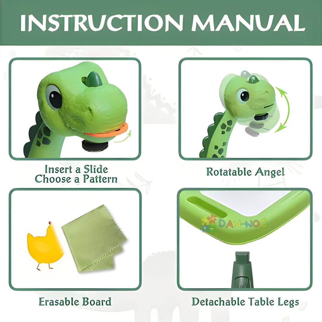 Sto za crtanje sa projektorom u obliku dinosaurusa pretvara crtanje u zabavnu i uspešnu aktivnost. Projektovane slike daju detetu jasne smernice, pa svaki crtež izgleda lepo i podstiče dete da nastavi da crta, istražuje i uči kroz igru.